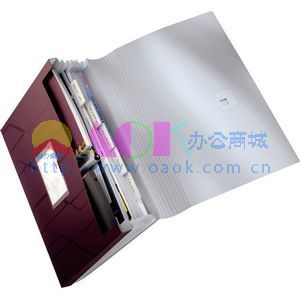 ┃颜色:赤褐色┃规格:A4 商务包┃包装:5个/箱┃产品尺寸(mm):340*330*40mm┃材质:PP┃纸质文件可以有条理的放入6个隔间,高容量,轻盈┃外部深色设计,内部浅色,和谐一致┃5个标签便于识别可伸展隔间,便于储存散装资料┃前端空格便于存放小件物品┃别致的弹性封闭方式以保护文件