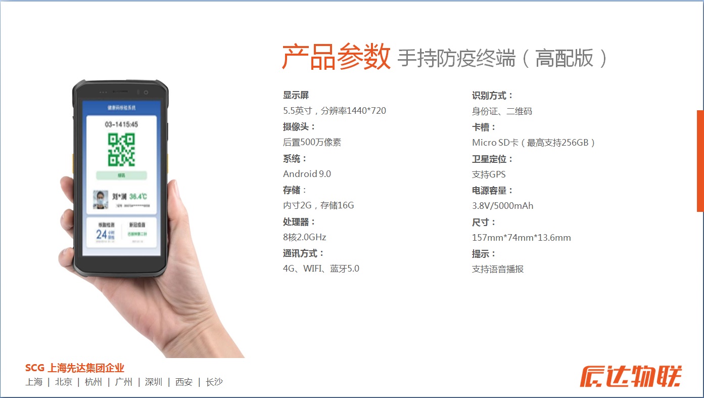 • 商品名称:辰达数字哨兵手持防疫终端(测温版)核验一体机 手持防疫终端 三色码核验