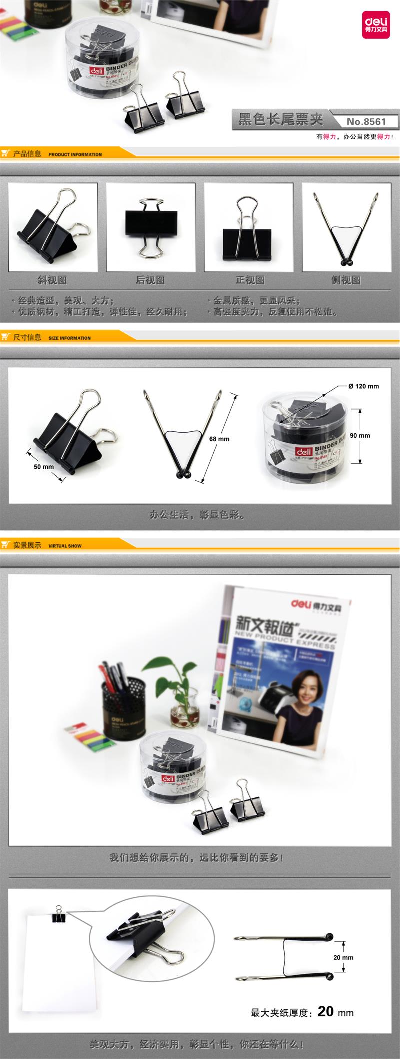 • 商品名称:得力 1#黑色长尾票夹51mm(筒装/黑色)