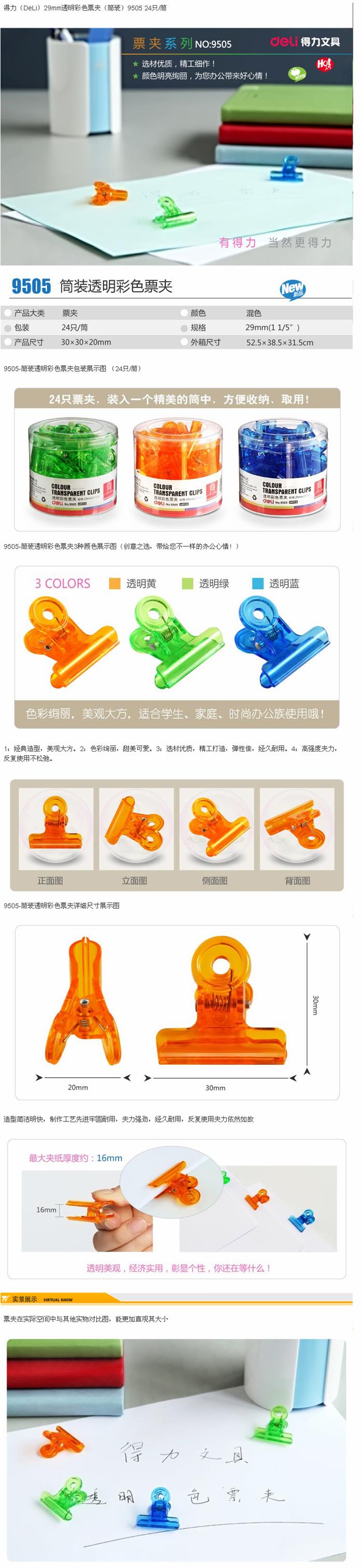 - 商品名称:得力 透明彩色票夹 29mm<混色>24只/筒
