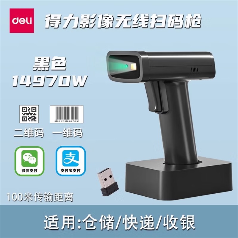 - 商品名称:得力14970W二维条码扫描枪 收银支付扫描器充电底座 黑色