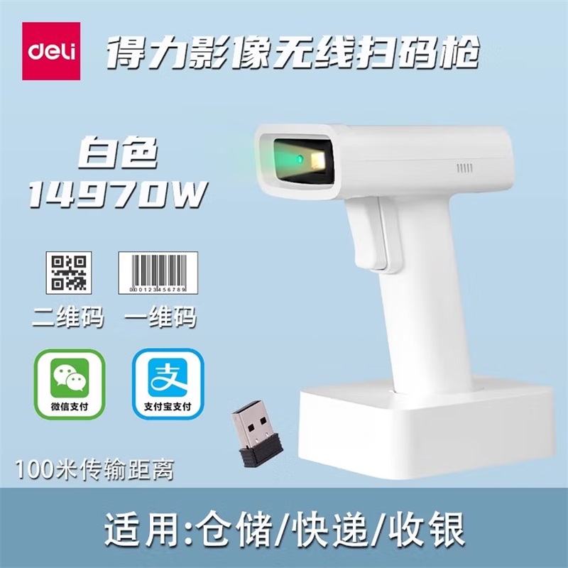 - 商品名称:得力14970W二维条码扫描枪 收银支付扫描器充电底座 白色