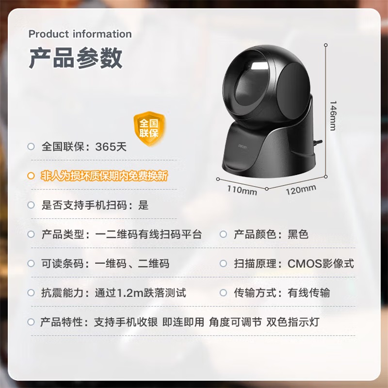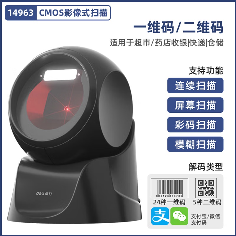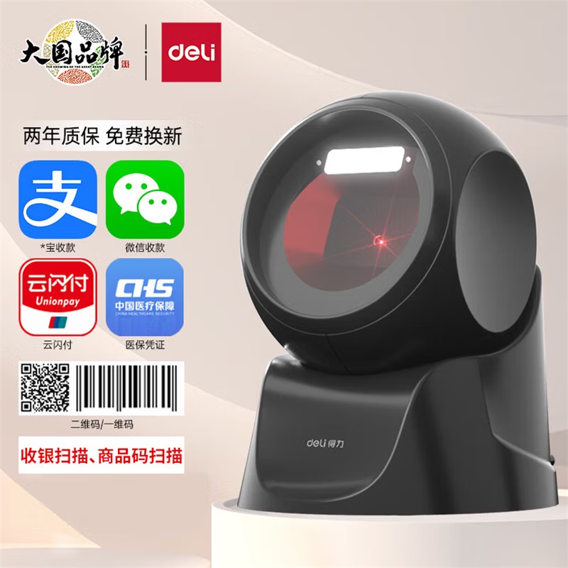 • 商品名称:得力14963扫描枪扫码枪一二维平台扫描器扫描平台 黑色