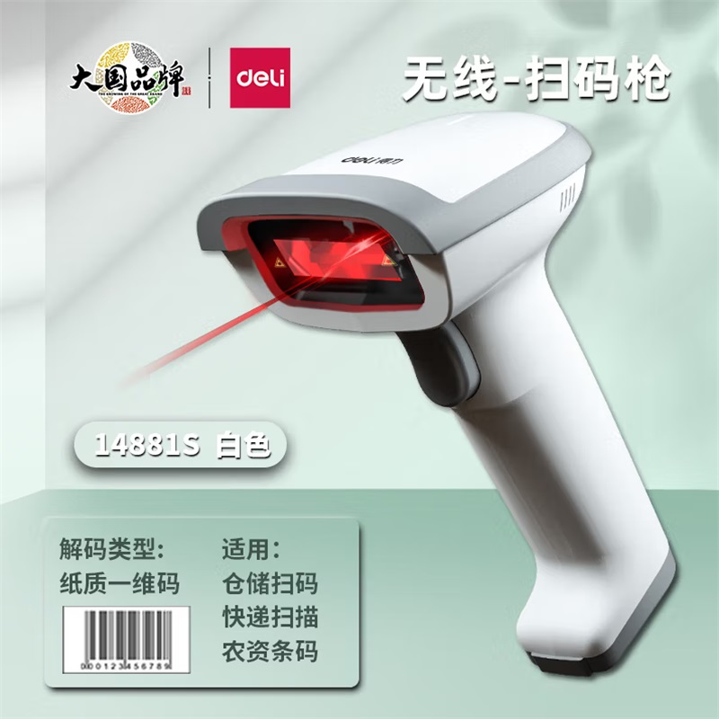- 商品名称:得力14881S激光条码扫描器扫描枪一维码无线 白色