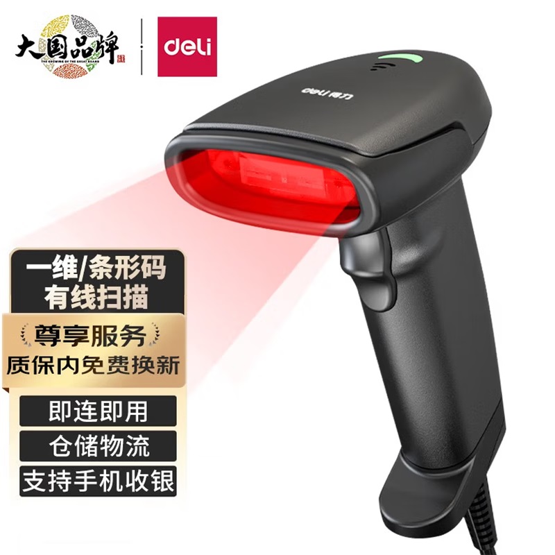 首页 > 办公设备 > 打印机 > 扫描枪/扫码枪 > 得力AA101-D条码扫描枪一维扫描器有线 黑色