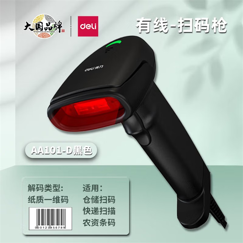 • 商品名称:得力AA101-D条码扫描枪一维扫描器有线 黑色