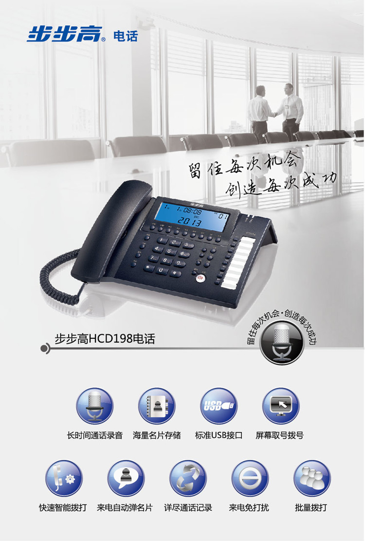 - 商品名称:步步高HCD198智能录音电话(蓝色)