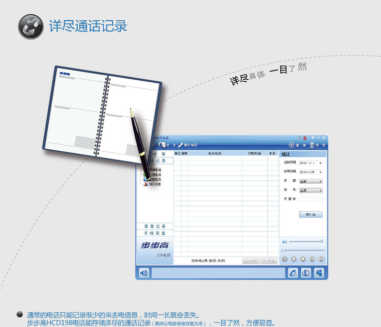 步步高HCD198智能录音电话,海量存储空间、智能管理系统