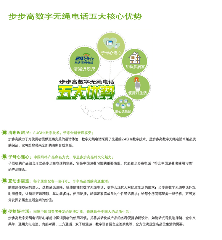 - 商品名称:步步高W202数字无绳电话 负显屏 钢琴烤漆材质(白色)套装