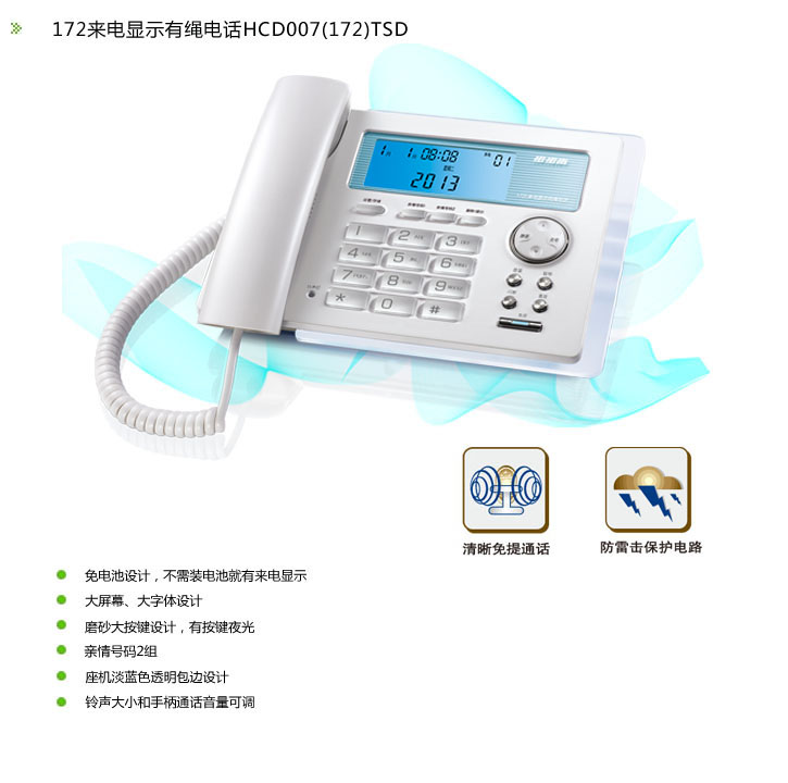 - 商品名称:步步高HCD007(172)TSD免电池电话(白色)