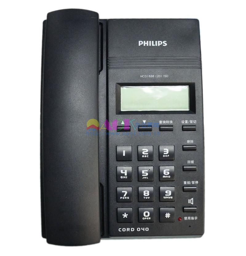 飞利浦CORD040来电显示电话机(深蓝色)飞利浦CORD040电话机详细介绍: FSK/DTMF来电制式兼容; 可保存最多50组来电信息(当来电号码平均为8位数时); 可任意查阅、回拨或删除来电号码; 16种铃声选择; LCD12位显示; 1-99小时来电免打扰设置; 可查阅16组最新的去电号码和通话所用的时间; 可设置3组闹钟、每组闹钟铃声音不同; 预置拨号、拨错可修改,重拨位数最长为32位; 免提通话和手柄通话可随意转换。