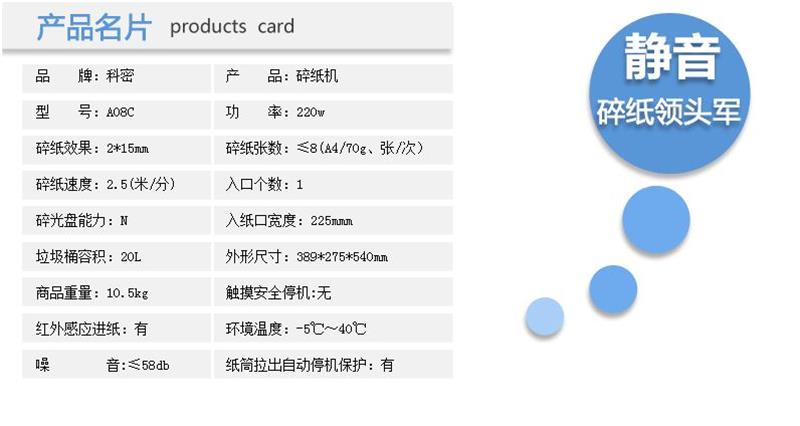 • 商品名称:科密(comet) A08C 碎纸机 电动办公 家用 粉碎机 静音