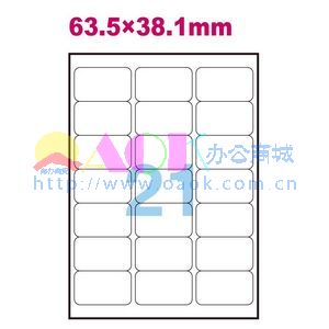 ┃纸张类别: 圆角┃颜色:白色┃规格:63.5*38.1mm┃每张标签数:21枚┃包装:10张/包┃颜色:白色┃100%进口电脑打印标签纸,喷墨打印专业纸品,邮寄包装用品及会议展示用品┃适用于复印、喷墨打印、黑白、彩色激光打印