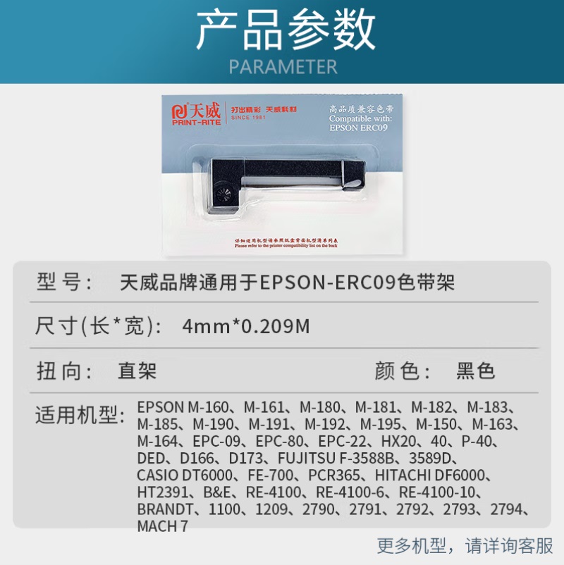 - 商品名称:天威 爱普生ERC09-PU-0.209m 4mm ST色带框