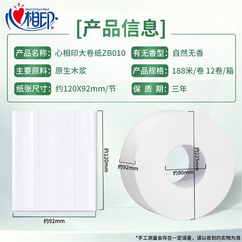 - 商品名称:心相印ZB010商用三层珍宝大卷纸 188米 12卷/箱