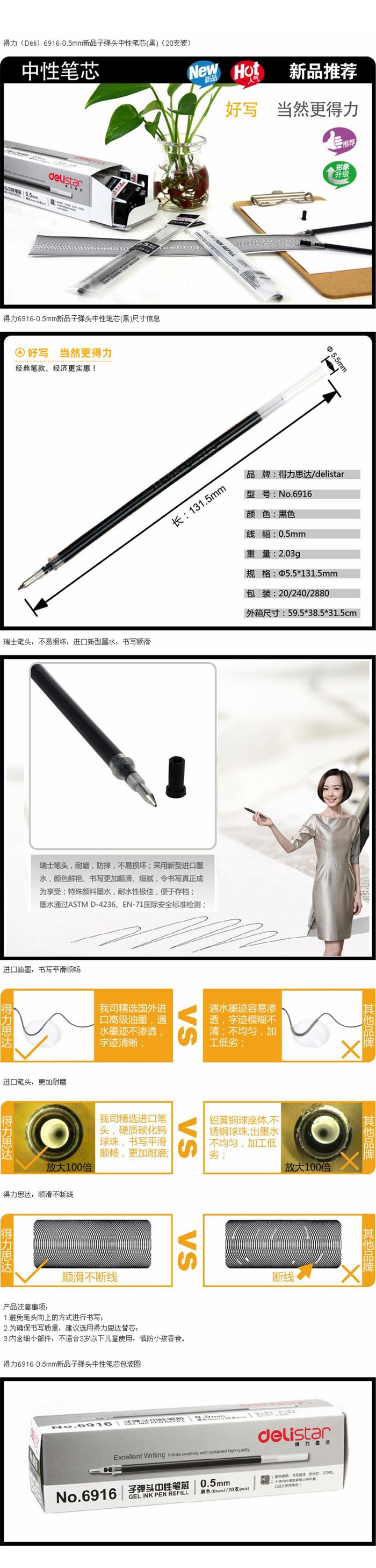 - 商品名称:得力 子弹头中性笔芯 0.5mm<黑色>20支装