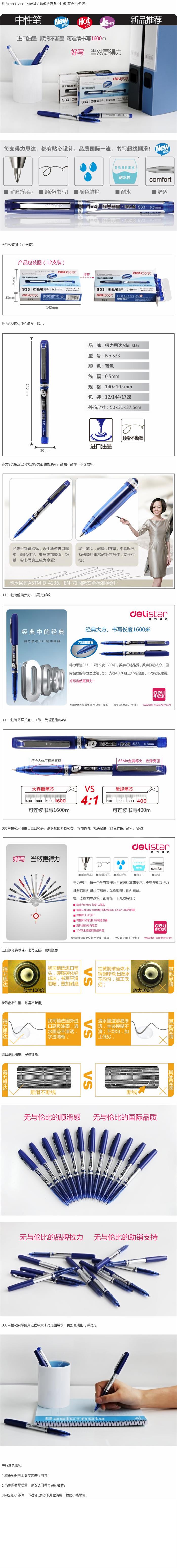 - 商品名称:得力S33海之鲸超大容量中性笔 0.5mm<黑色>