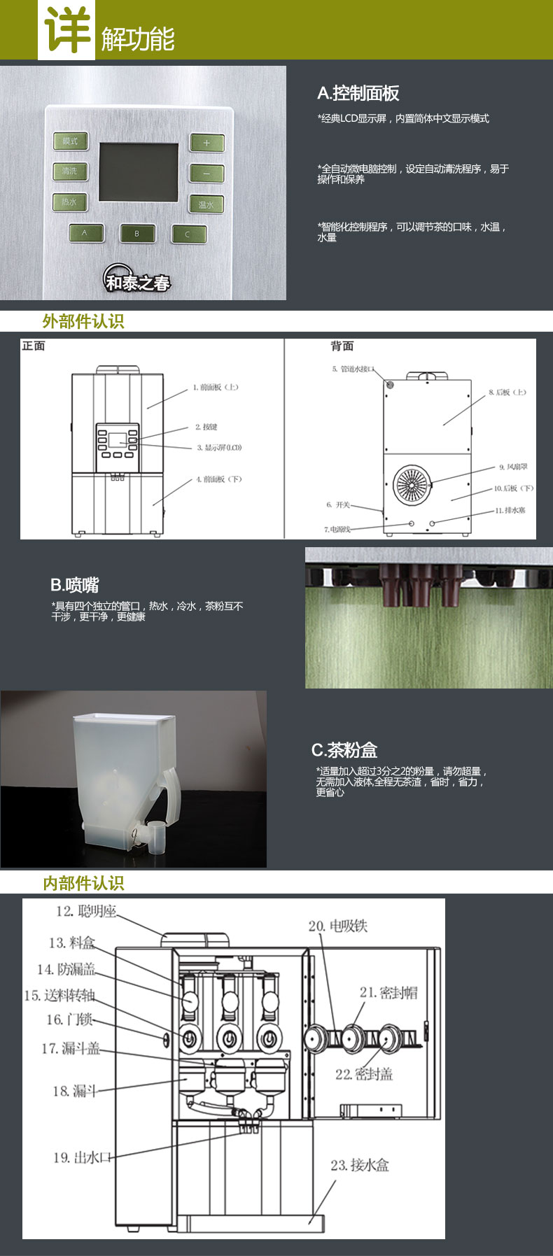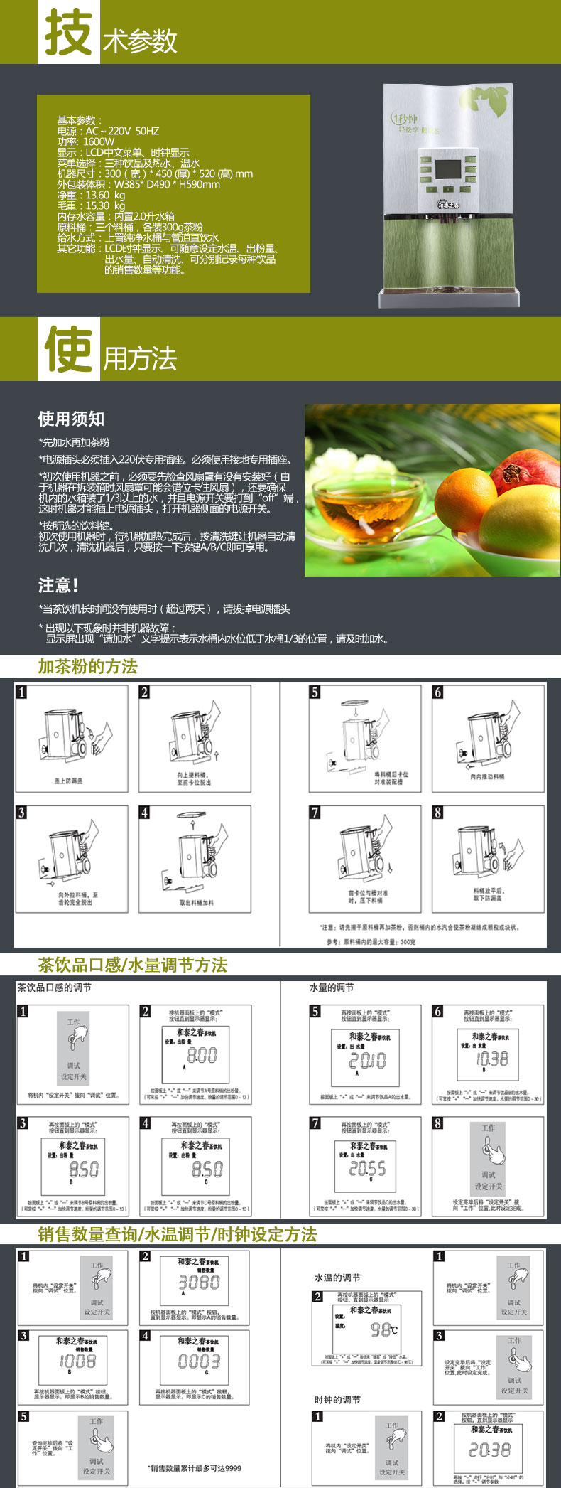 三、超强微电脑控制,多功能冷热一体,全自动冲调,操作简单方便,10秒内完成操作,省力省时。