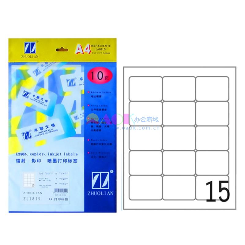- 商品名称:卓联10页打印标签 63.5*54mm ZL1815A英文底