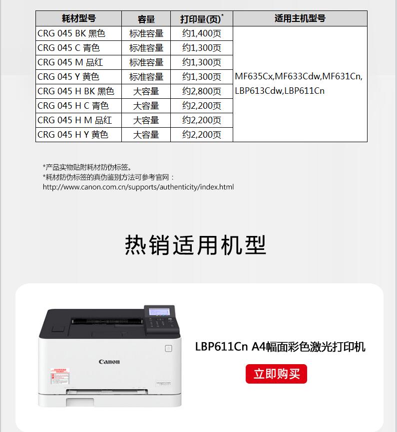 - 商品名称:佳能CRG045硒鼓Y黄色(适用MF635Cx/MF633Cdw/MF631Cn)