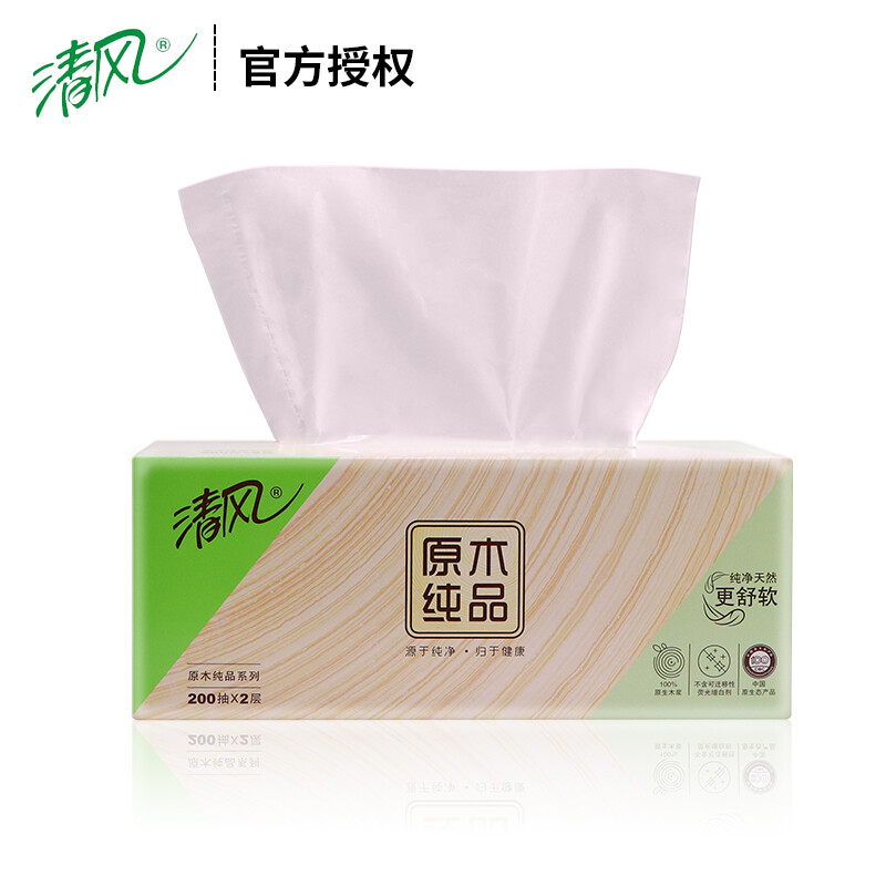 - 商品名称:清风200抽原木纯品盒装面巾纸 206*195mm(3盒/提)