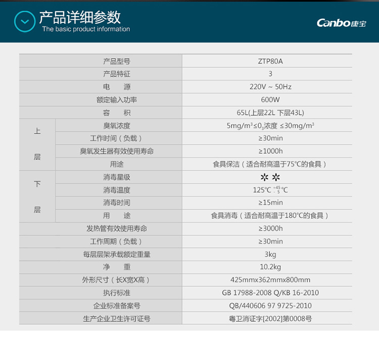 - 商品名称:康宝ZTP80A-3 立式 消毒柜 家用 消毒碗柜
